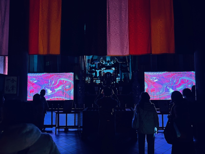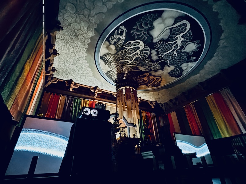 æ¬ã€ãã³ãã«ãããŠæå¥¥ã«äœçœ®ããéŸçæ®¿ïŒæ¹äžïŒã§ã¯ãèªèº«ã®è³æ³¢ç³»ãææ°ã®ããžã¿ã«æè¡ãçšããŠå¯èŠåããæ åãšããŠè¶ çµ¶çŽ æµã«è¡šçŸâ¡