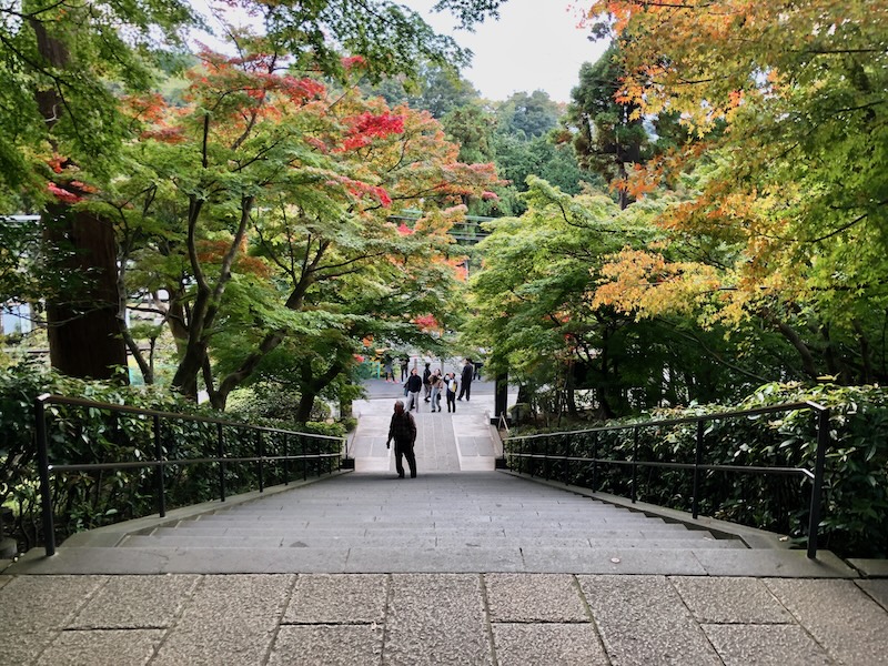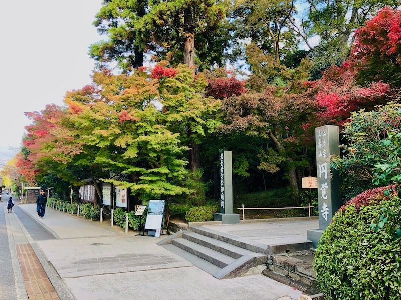円覚寺の入口は上掲写真に見られるように階段になっていて、秋になるとこの階段脇に植栽されるモミジたちが紅葉するので、入口からすでに紅葉が観られる。
