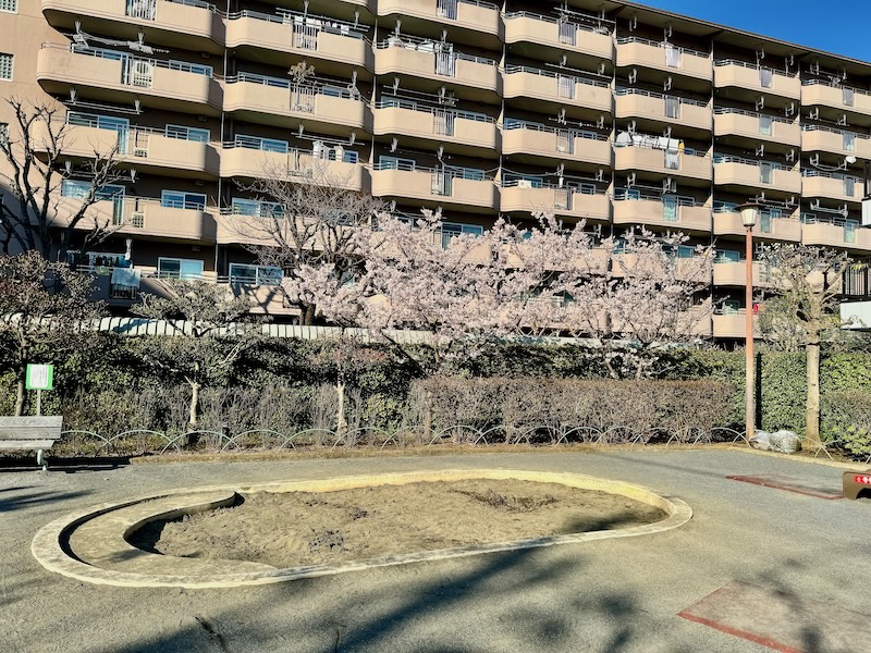 ↑「玉縄桜」と書かれた樹名板がパンツちら見え級にチラ見えちまってる♡マンションの住民に告ぐ!くれぐれも‥くれぐりぇも!!観桜シーズンにパンツをベランダに干さんように!