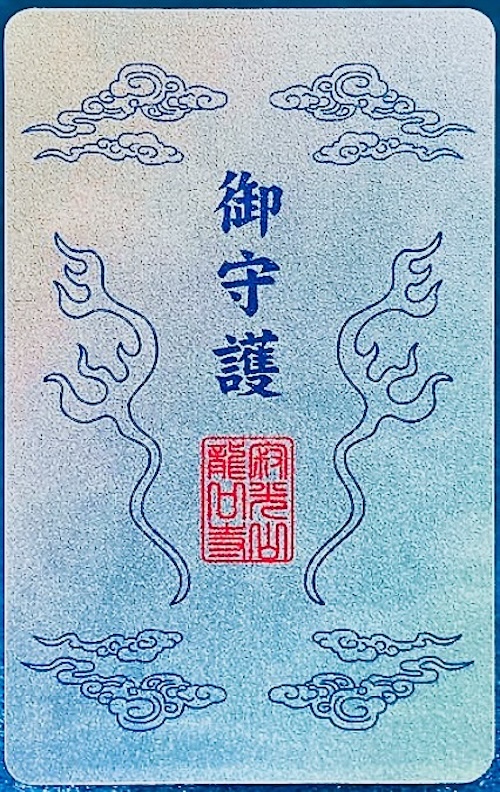 表面には、まるで二匹の天降る青龍を描いたような焔模様の青線と、その中央に「御守護」と青文字で素敵に表現♡
