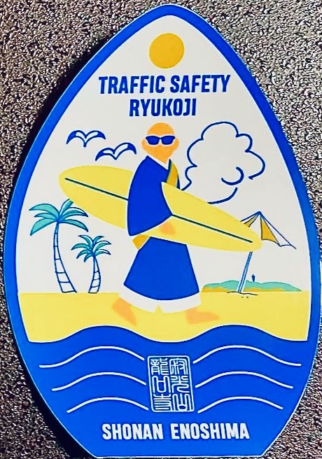 しかし自身が生臭ボウズだけに、告っても瞬殺されて終わっちまぅ…。そこでモテモテ路線絶好調♡のサーファーになっちまぅことでモテ始めるどぅぁろぅ‥と素敵に考え、その様子をステッカーデザインとした、その名も「交通安全守」! ホンマかぃ