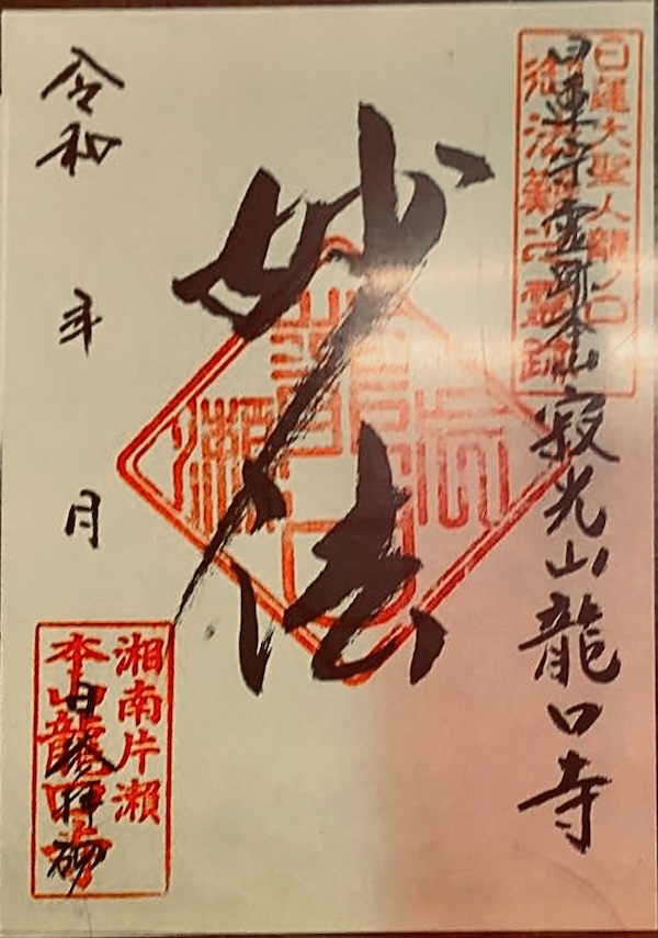 中央には「湘南 龍口」の印判。左下には「湘南片瀬 本山 龍口寺」と素敵に陰刻された印判の押印が‥あっちゃぅ。