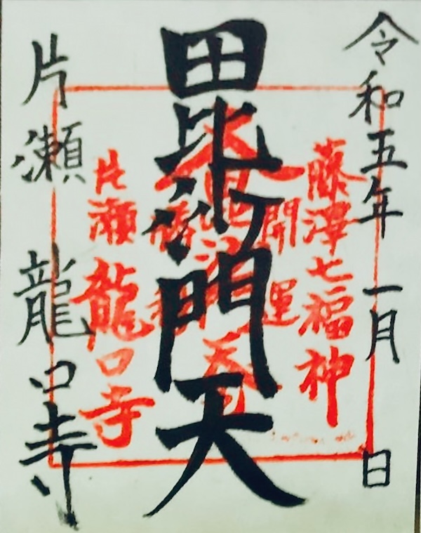 当御朱印の印判には「藤澤七福神 開運 毘沙門天 片瀬 龍口寺」と素敵に陰刻された大サイズの印判の押印が‥あっちゃぅ。