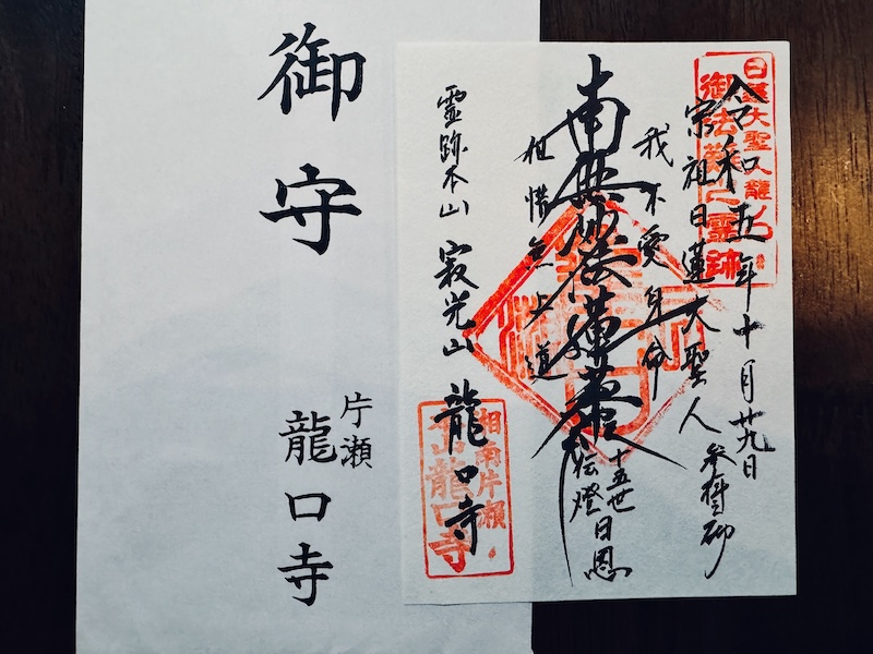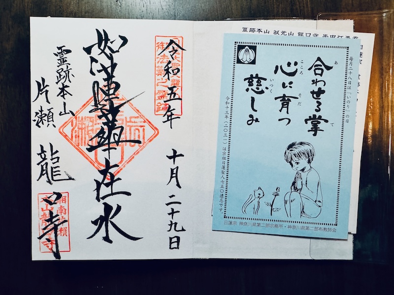 印判は冒頭のものと同じで、右上には『日蓮大聖人 龍ノ口 御法難之霊跡』と素敵に陰刻された朱印の押印。