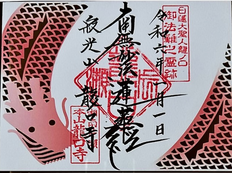龍口寺では令和六年の元旦より新たに龍の切り絵御朱印の頒布をはじめてい‥申す。ひょ