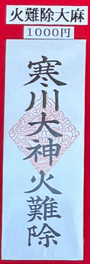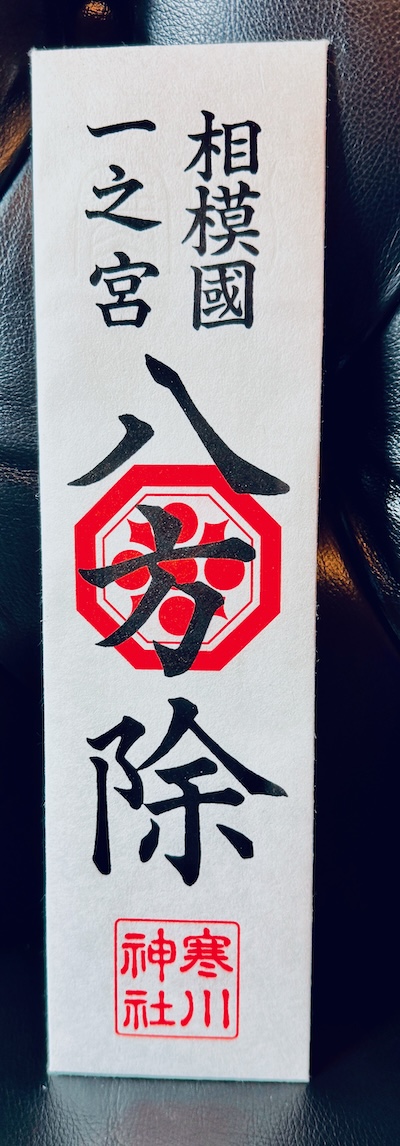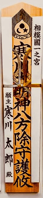 「寒川大明神 八方除守護 攸」と書かれたお札。