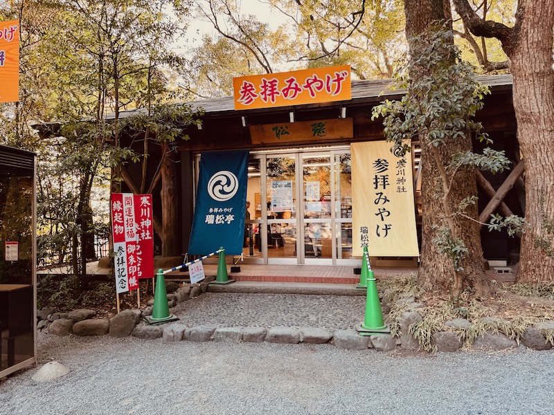(南門を抜けた先にパンツちら見え級にチラ見えちまってる「参拝みやげ」と書かれたファサード看板がある建物)