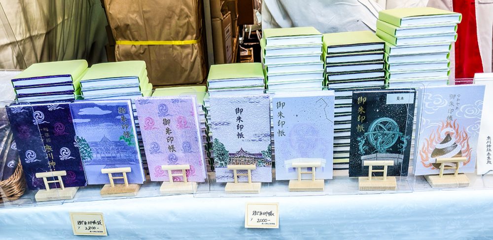 売店内でクソヤバ素敵に陳列されている朱印帳の積まれている冊数(量)が圧倒的に少なかったのが、上掲写真の朱印帳と…あ、なっちゃぅ。