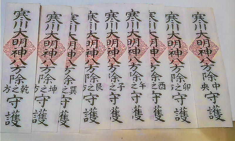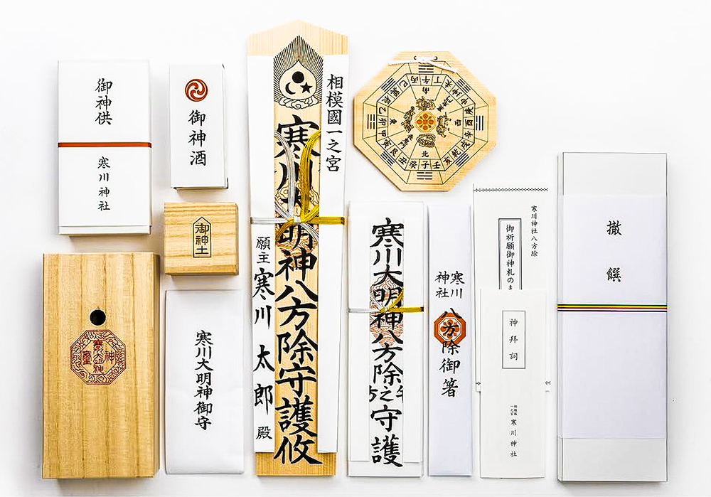 御神土、御守、八方札御神札(九体)、御弊束、八方御箸、八方除門札