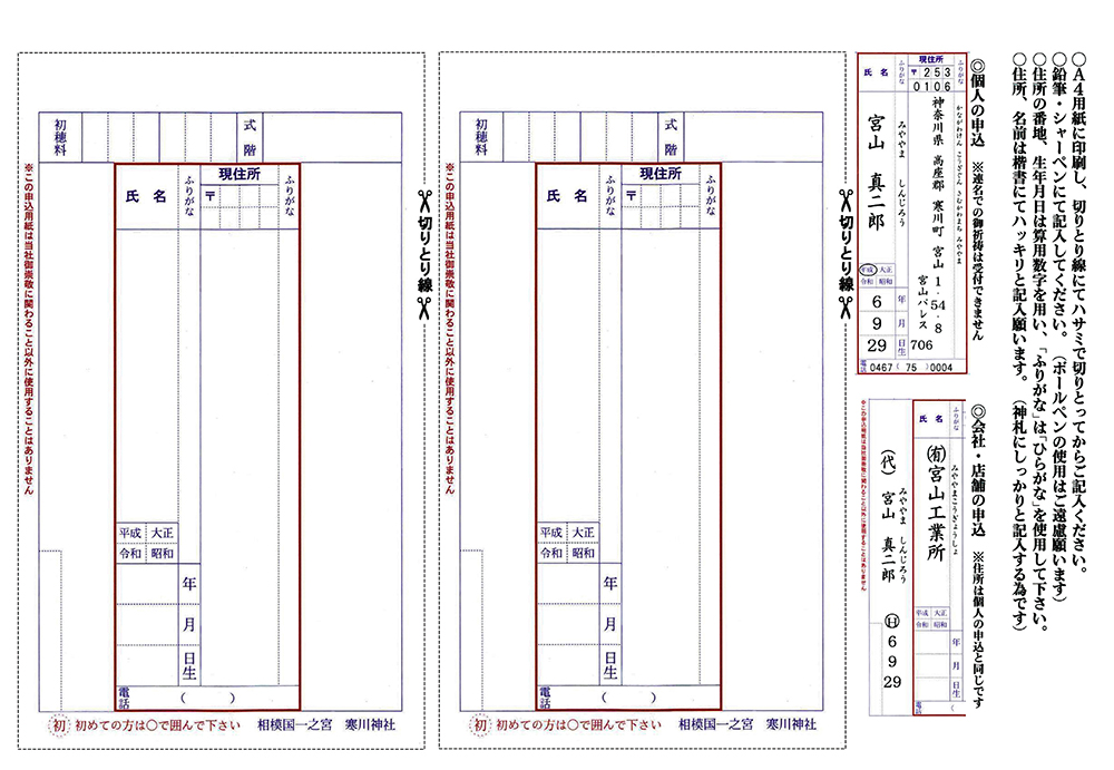 御祈願申込用紙 〔サンプル〕