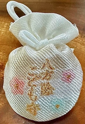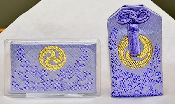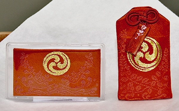 ↑左側が厚手ビニールに封入されたカードタイプ、右側が通例の布帛巾着袋タイプ