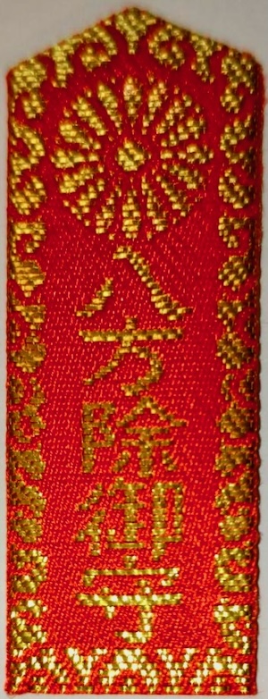 これは使用するものなので、厳密にお守りとは言い難いが、安産祈願が為された「さらし」。岩田帯。