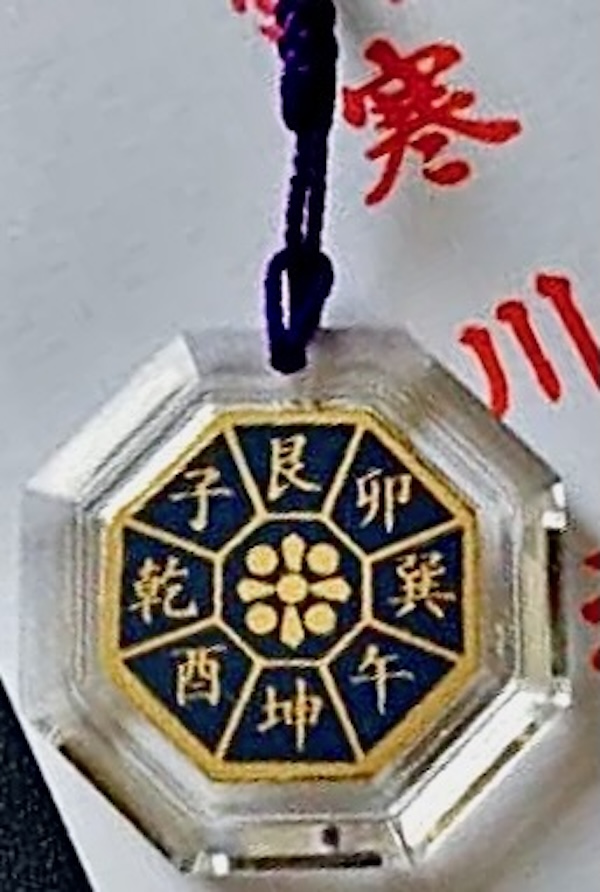 裏面には「艮 卯 巽 午 坤 酉 乾 子」の方位盤が素敵にデザインされた如何にも方位除の利生で知られる寒川社らしいお守りといえる。