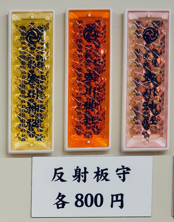 交通安全祈祷されたれっきとしたお守りなのだが、反射板が付いているので、車体の外観に貼り付けることで事故を未然に防ぐ意味合いも素敵に兼ねる。