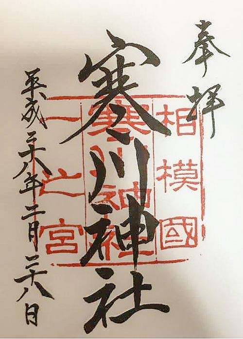 押印は中央の「相模國(国) 寒川神社 一之宮」と きわめて素敵に陰刻された朱印の押印があるのみ。