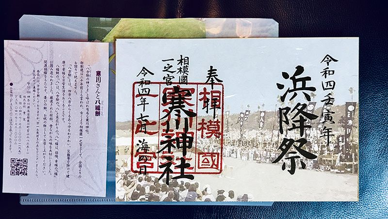「浜降祭」と書かれた写真画像が背景のカラフルな御朱印