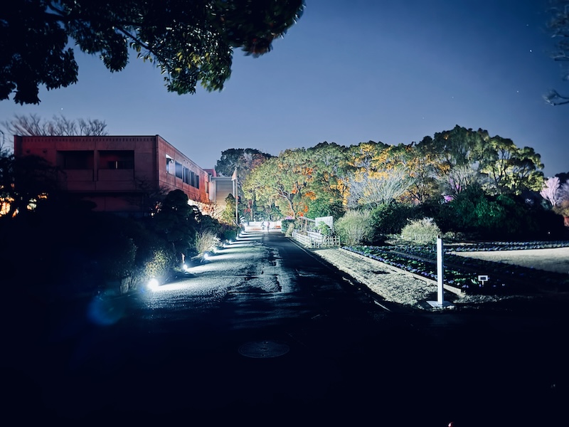 満月の演出も加わった、おそらく、さらに幻想的な園内ライトアップ