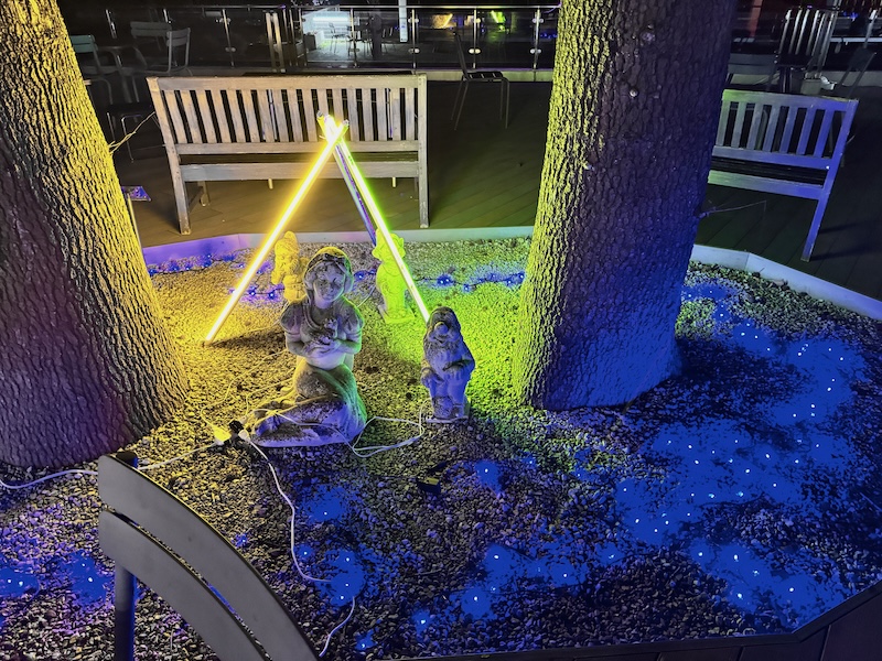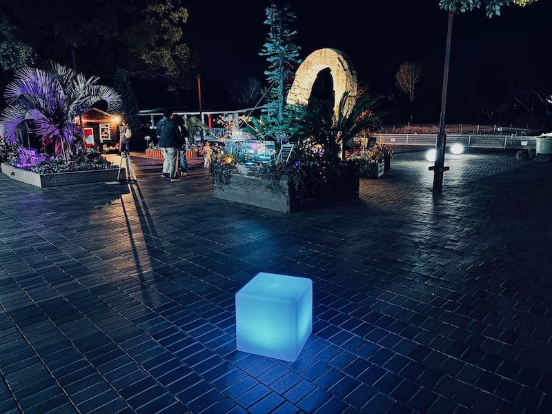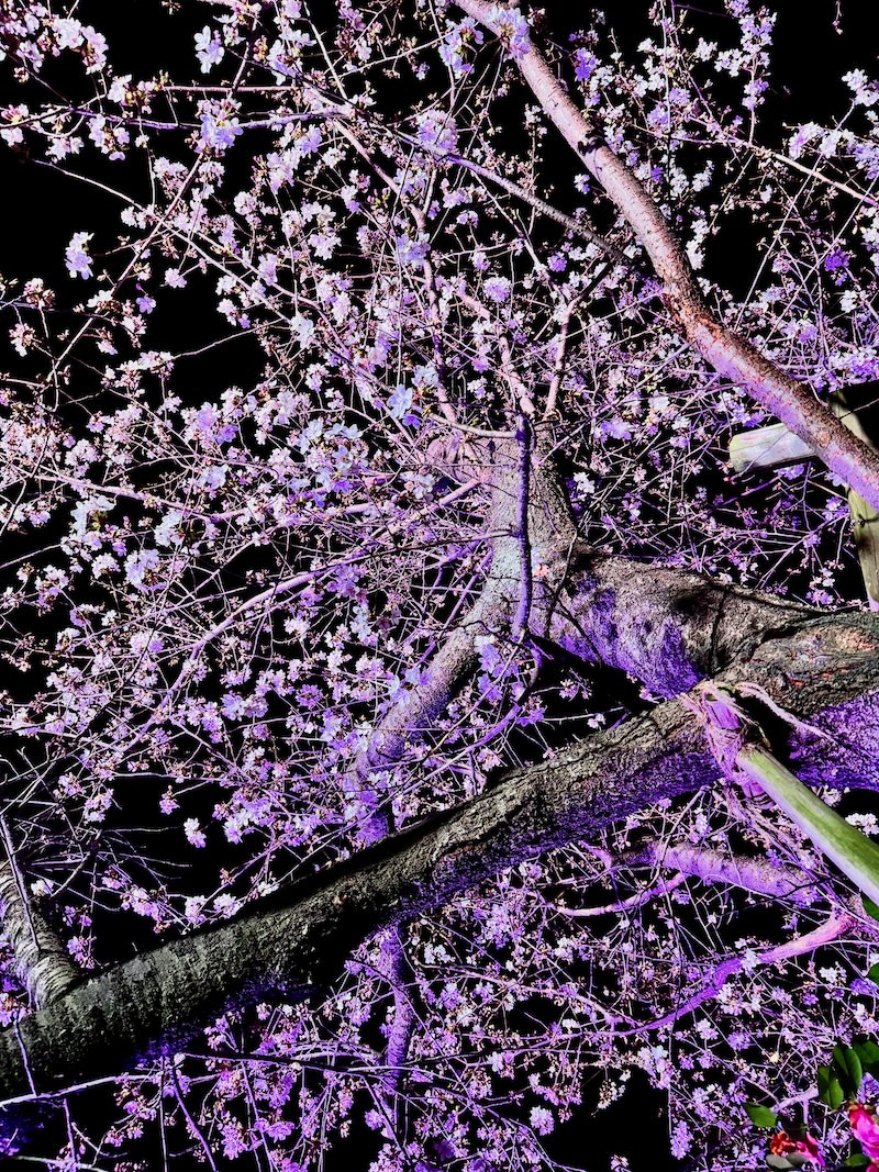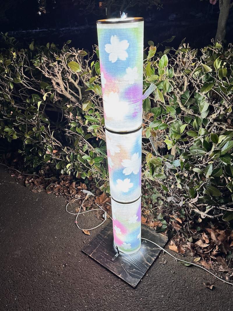 ↑のライトアップされる うまか棒は、実は下掲写真のようなバックライト演出により、桜花の花ビラが浮かび上がる演出だったのだ。..うまい棒?