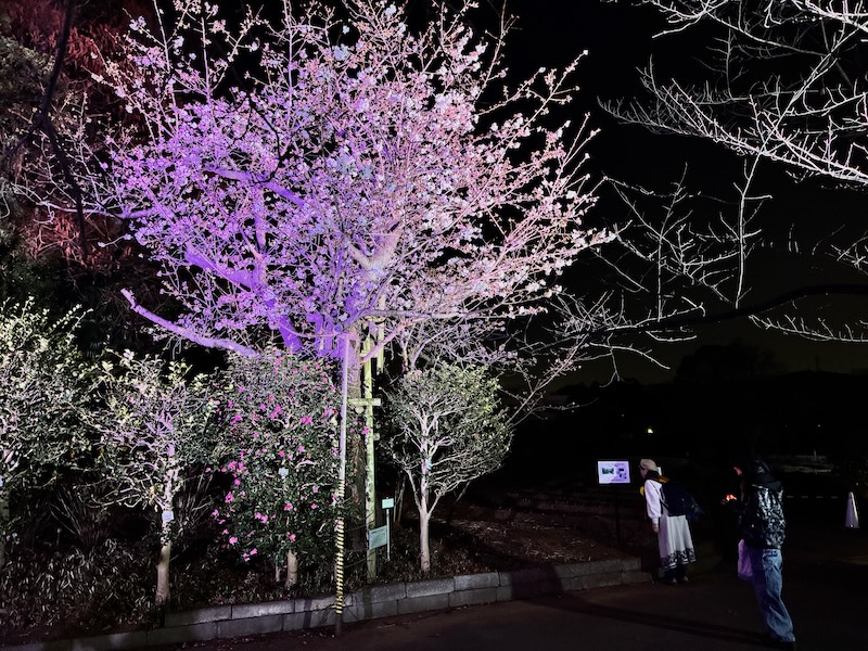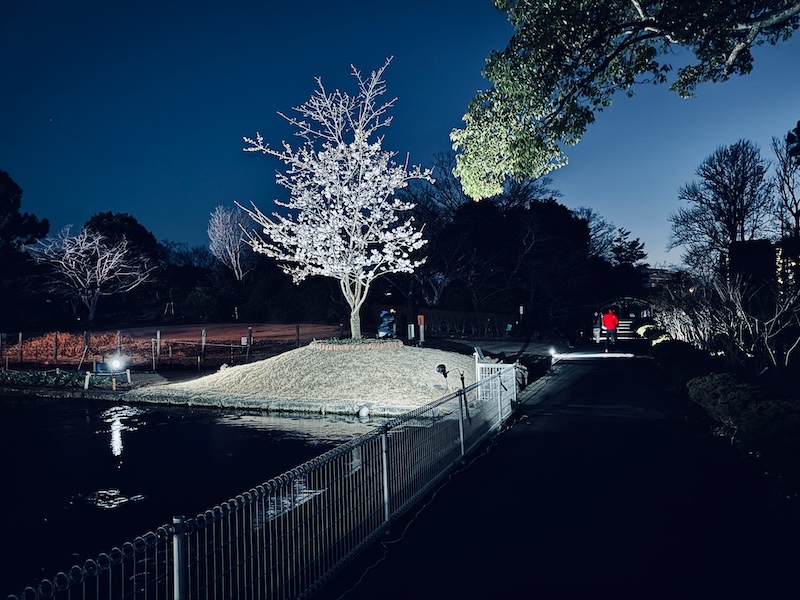 大船フラワーセンターでは毎年、玉縄桜の開花シーズンになると夜桜ライトアップを期間限定で開催する。